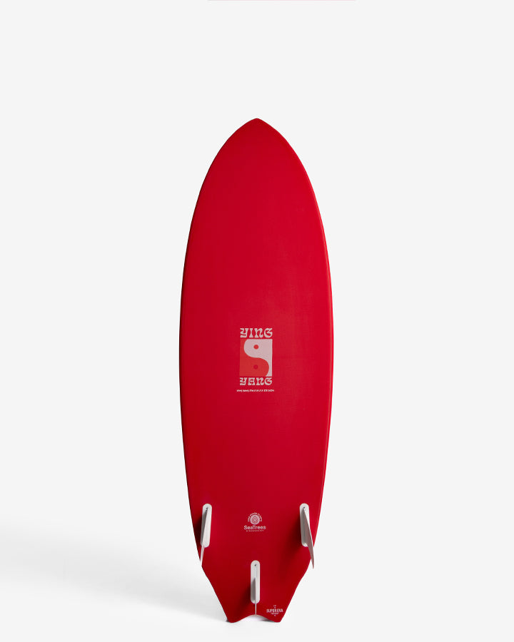 Ying Yangはツインフィンセッティングに加え、スタビライザーフィン(センターフィン )を搭載することで、自由度とコントロール性能を絶妙に両立。ターンの精度が高まり、 スムーズなライディングを実現します。フラットデッキとベベルレールの設計により、パ ドリングやグライドが楽にでき、さまざまな波のコンディションで遊び心のあるレスポン スの良いライディングを楽しめます