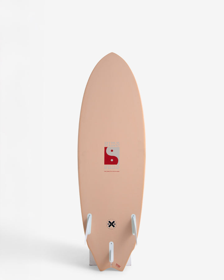 Ying Yangはツインフィンセッティングに加え、スタビライザーフィン(センターフィン )を搭載することで、自由度とコントロール性能を絶妙に両立。ターンの精度が高まり、 スムーズなライディングを実現します。フラットデッキとベベルレールの設計により、パ ドリングやグライドが楽にでき、さまざまな波のコンディションで遊び心のあるレスポン スの良いライディングを楽しめます